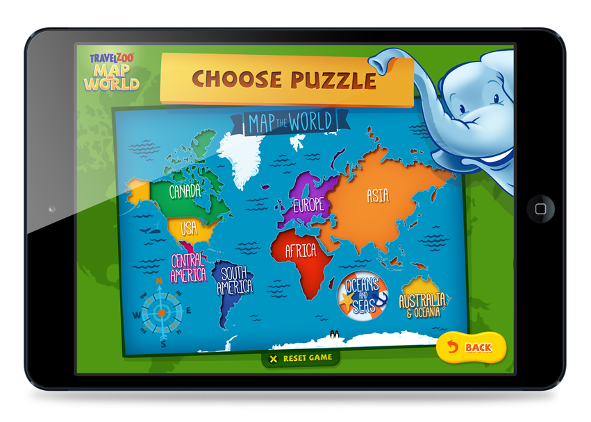 The team formed immediately, with a graphics designer and a programmer devoting the next couple of weeks exclusively to Travelzoo – Map the World. The first thing they did, even before the first sketches, was that they decided they would map the entire globe, and have an elephant – the game’s mascot – invite users to go over it and fill in the pieces. (As an extra challenge, a few weeks after the concept was created, a puzzle of the world’s seas and oceans was added.)